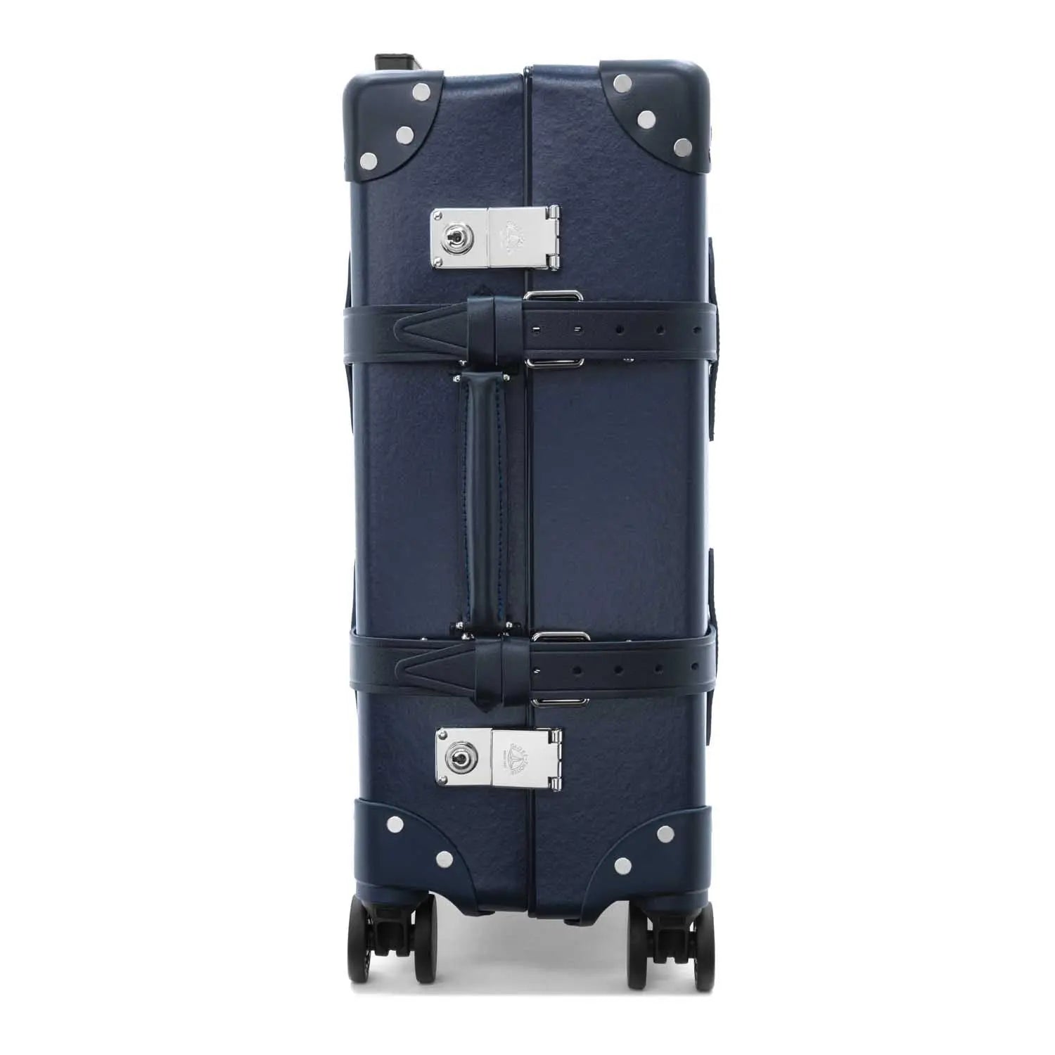 Part of the Centenary collection, this piece highlights the very best of British craftsmanship. The deep navy vulcanised fibreboard exterior is perfectly paired with handcrafted navy leather corners, straps, and guides, creating a sleek and cohesive design. Polished chrome fittings complete the look, adding a modern contrast to the rich navy tones.